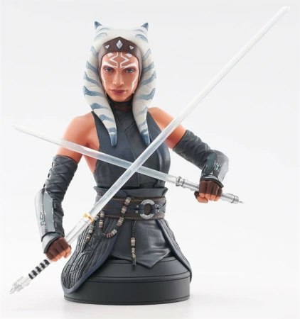 Eine Veröffentlichung von Gentle Giant Ltd. Der Moment, auf den Sie gewartet haben, ist gekommen! Gentle Giant Ltd. ist bereit, ihre Mini-Büste von Ahsoka Tano anzubieten, wie sie in der zweiten Staffel von The Mandalorian zu sehen ist. Diese Mini-Büste, die sie mit ihren beiden gekreuzten Lichtschwertern zeigt, ist ca. 7 inch groß, detailliert modelliert und bemalt und wird mit einem nummerierten Echtheitszertifikat in einer vollfarbigen Box geliefert. Limitiert auf nur 3.000 Stück. Entworfen von den Silva Bros. und geformt von den Künstlern von Gentle Giant Ltd.