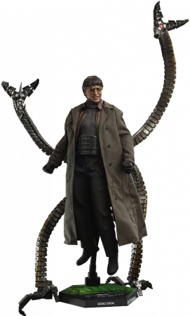 Die Figur wurde auf der Grundlage des von Alfred Molina dargestellten Doc Ock aus dem Film gefertigt und verfügt über eine neu entwickelte Kopfskulptur mit verblüffender Ähnlichkeit, ein perfekt geschneidertes Outfit mit authentischen Details an Gürtel und Mantel, biegsame Tentakel, die aus seinem Rücken herausragen, mit beweglichen Klauen, die seine charakteristischen Waffen und ihr mechanisches Design bis ins kleinste Detail einfangen, eine Brille, einen Tentakelspeer und einen dynamischen Figurenständer.