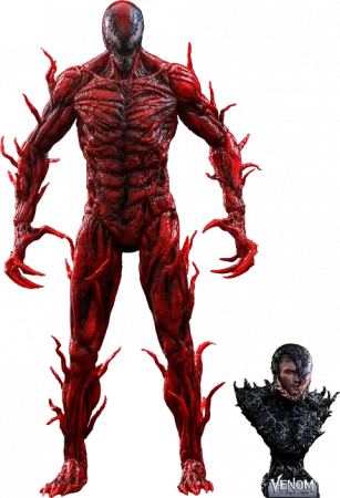 Die Figur wurde fachmännisch nach dem Vorbild von Carnage aus dem Film Venom: Let There Be Carnage. Die hochpräzise Figur ist ca. 43 cm groß und zeichnet sich durch ein hohes Maß an Detailtreue aus, insbesondere bei der Hauttextur, dem furchterregenden Maul und der Zunge. Die Figur im Maßstab 1:6 verfügt über einen Körper, der mit purpurrotem und schwarzem Gurtband bemalt ist; zwei neu entwickelte Kopfskulpturen mit einer grinsenden Kopfskulptur und einer Kopfskulptur mit gezahntem Mund und drei austauschbaren, herausstehenden Zungen; monströse Waffen und Zubehör wie Angriffsklauen, Sichel, Schwert sowie eine Reihe von Symbionten-Tentakeln, die aus seinem Rücken mit verschiedenen Arten von austauschbaren Symbiontenteilen herausragen; und einen Figurenständer.