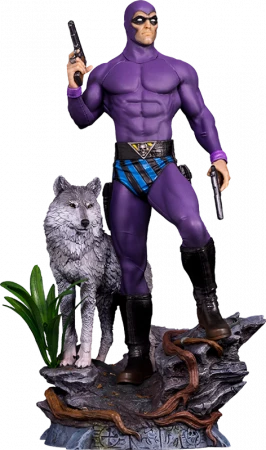 Auf einem Hügel in den Tiefen des fiktiven Dschungels von Bangalla, im äquatorialen Afrika, schärft die imposante weltliche Purpurgestalt seine Sinne durch das Trommeln der Bandar-Pygmäen, seiner Verbündeten. Zusammen mit seinem treuen Wolfsgefährten namens Devil wacht der unerbittliche Kämpfer der Singh-Piraten und aller Schurken und bereitet sich mit seinen beiden Pistolen vom Kaliber .45 ACP in der Hand vor. Ein Licht reflektiert von der Metallschnalle seines Ledergürtels in Form eines Totenkopfes, seinem Markenzeichen. Iron Studios ist stolz darauf, mit der Statue “The Phantom Deluxe – Art Scale 1:10 – The Phantom” einen der größten klassischen Comic-Helden zu präsentieren. Er ist der erste fiktive Held, der maskiert und in einem Trikot gekleidet ist, das zu einem Markenzeichen der Superhelden in den Comics geworden ist!