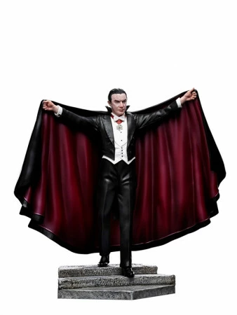 An der Grenze zwischen Siebenbürgen und der Walachei, mitten im Wald in den Karpaten, öffnet eine edle und exzentrische aristokratische Gestalt, gekleidet in einen galanten Gesellschaftsanzug, ihren rot-schwarzen Umhang wie riesige Flügel einer nächtlichen Kreatur und fixiert ihre hypnotischen Augen, um sich vom Blut lebender Beute zu ernähren, um ihre Macht und Unsterblichkeit zu erhalten. So präsentieren die Iron Studios stolz ihre Statue “Dracula – Art Scale 1/10 – Universal Monsters”, mit dem berühmtesten Vampir der Fiktion.