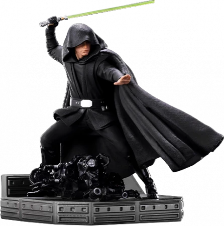 An Bord des leichten Raumschiffs des imperialen Offiziers Moff Gideon setzt die rätselhafte Figur eines Jedi-Meisters, der einen schwarzen Kapuzenumhang trägt, mit seiner linken Hand sein ganzes Können und seine Verbindung zur Macht der Macht ein. In der rechten Hand, mit einem Handschuh, schwingt er meisterhaft ein grünes Lichtschwert. Zu seinen Füßen liegen die metallischen Überreste eines tödlichen Dark Trooper-Droiden, der zu einem Sicherheitstrupp gehört, der vergeblich versucht, den unerbittlichen Krieger aufzuhalten. Inspiriert von einer der denkwürdigsten Szenen aus der letzten Episode der zweiten Staffel der Serie The Mandalorian, präsentiert Iron Studios die Statue “Luke Skywalker BDS Combat Version – Art Scale 1:10 – The Mandalorian”, die den größten Helden der Star Wars Saga bei seinem unerwarteten Auftritt in der Disney+ Streaming-Serie zeigt.