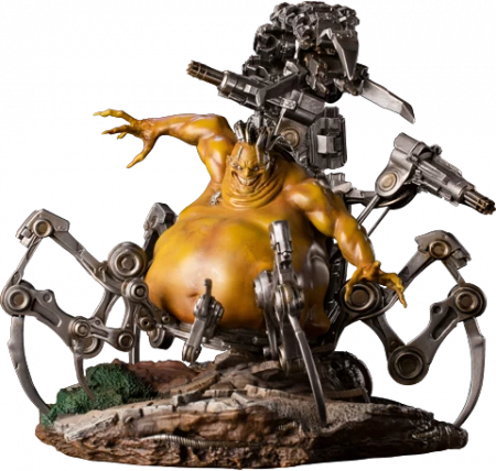 Als wäre er direkt aus einem Albtraum entsprungen, bewegt sich dieses stämmige, unförmige, gelbhäutige Wesen wie ein Spinnentier. Es wird von mechanischen Pfoten bewegt, die aus einer motorisierten Plattform kommen, um seinen beleibten Körper zu transportieren, und von einem metallischen Schwanz gestützt, der anstelle der Wirbelsäule sitzt, genau wie bei einem Skorpion, während die Spitze seines Schwanzes tödliche Ressourcen freisetzt, mit Klauen und Partikelstrahlwaffen. Als furchteinflößender interdimensionaler Zauberer, Meister der Manipulation und Maschinist seines Universums, rückt er auf einer Basis vor, die den Gärten von Mansion X ähnelt, zusammen mit anderen Mutanten-Superschurken in einem Diorama-Setting, neben Magneto und Robots Sentinels versus the X-Men. Für Fans und Sammler, aus der Dimension, die seinen Namen trägt, präsentiert Iron Studios stolz seine Statue “Mojo Deluxe 1:10 Scale Statue – Art Scale BDS Series.”