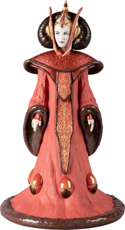Die größte Herausforderung bei der Herstellung dieses Stücks war die akribische Pflege der Details, der Ornamente des Kostüms und des Kopfschmucks, um zu gewährleisten, dass sie so originalgetreu wie möglich sind. Dies gilt insbesondere für die Mimik. Da die Pose insgesamt statisch ist, musste die ganze Kraft des Gesichts eingefangen werden, um die Persönlichkeit Amidalas zu vermitteln, weshalb dem Blick besondere Aufmerksamkeit geschenkt wurde. Sie ist eine der am stärksten ausgeprägten Frauenfiguren, mit der die interessantesten Dinge geschehen. In diesem ersten Werk wird sie als Königin in höchstem Maße dargestellt, daher muss ihr Ausdruck königlich sein. Aber sie ist 15 Jahre alt, ihre Welt wird von der Handelsföderation belagert und vom Rest der Galaxis abgeschnitten, sie steht kurz vor einer militärischen Invasion und die Jedi, die der Kanzler angeblich zu Verhandlungen geschickt hat, sind verschwunden.