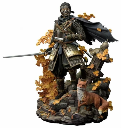 – Statue Größe ca. 23 Inch groß [H: 58,2 cm B: 56,8 cm T: 43,9 cm] – Eine (1) Ghost of Tsushima gestaltete Theme Base