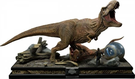 Prime 1 Studio ist sehr stolz darauf, dieses beeindruckende 19 Zoll hohe und fast 3 Fuß breite Set-Teil als Teil unserer Legacy Museum Collection Serie zu präsentieren. Dieser entscheidende Moment in Jurassic World” ist eine Momentaufnahme der Zeit: Fallen Kingdom wird durch die Leidenschaft und den künstlerischen Einsatz unserer geschickten Kunsthandwerker, Bildhauer und Maler zum Leben erweckt. Der T-Rex, zweifellos der Star der gesamten Jurassic-Reihe, steht in strahlender Größe da und verkündet seinem gefallenen Feind und der Welt, wer der König der Dinosaurier ist! Prime 1 Studio hat die Echsenhaut dieser prächtigen Kreatur in akribischer Arbeit nachgebildet: jede einzelne Schuppe, jede Falte, jeder Stachel und jeder Zahn wurde perfekt modelliert. Der Carnotaurus, der sich in einer lebensunfähigen Position befindet, bringt seine Empörung über sein bevorstehendes Ableben mit lebensechter Wildheit zum Ausdruck! Die gleiche Sorgfalt und Kunstfertigkeit, die wir beim T-Rex an den Tag legten, haben wir auch dem Carnotaurus gewidmet. Seine Schuppen, Zähne, Muskeln und Krallen sind alle mit äußerster Präzision modelliert. Dann haben unsere Kunstmaler ihre ganze Erfahrung und ihr Talent eingesetzt, um die dynamische Farbgebung jeder Kreatur so wiederzugeben, wie sie im Film erscheint. Es ist eine unausgesprochene Regel, dass wir bei allen unseren Statuen stets eine filmgetreue Perfektion anstreben.