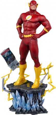 Diese vollständig aus Polyresin gefertigte Statue zeigt den Flash, wie er nach einem Kampf mit zwei seiner berüchtigtsten Feinde – Captain Cold und Captain Boomerang – heldenhaft ins Bild gleitet, umgeben von seiner Geschwindigkeitskraft!