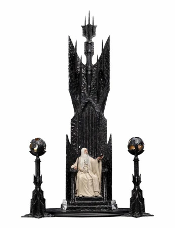 – Zeigt den ikonischen Verbündeten, der zum Schurken Saruman wurde, auf seinem geschwärzten Thron sitzend
